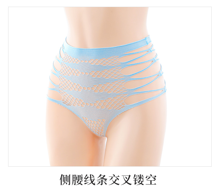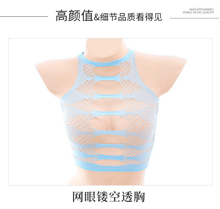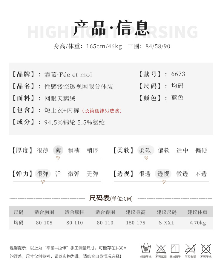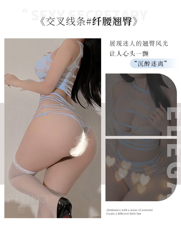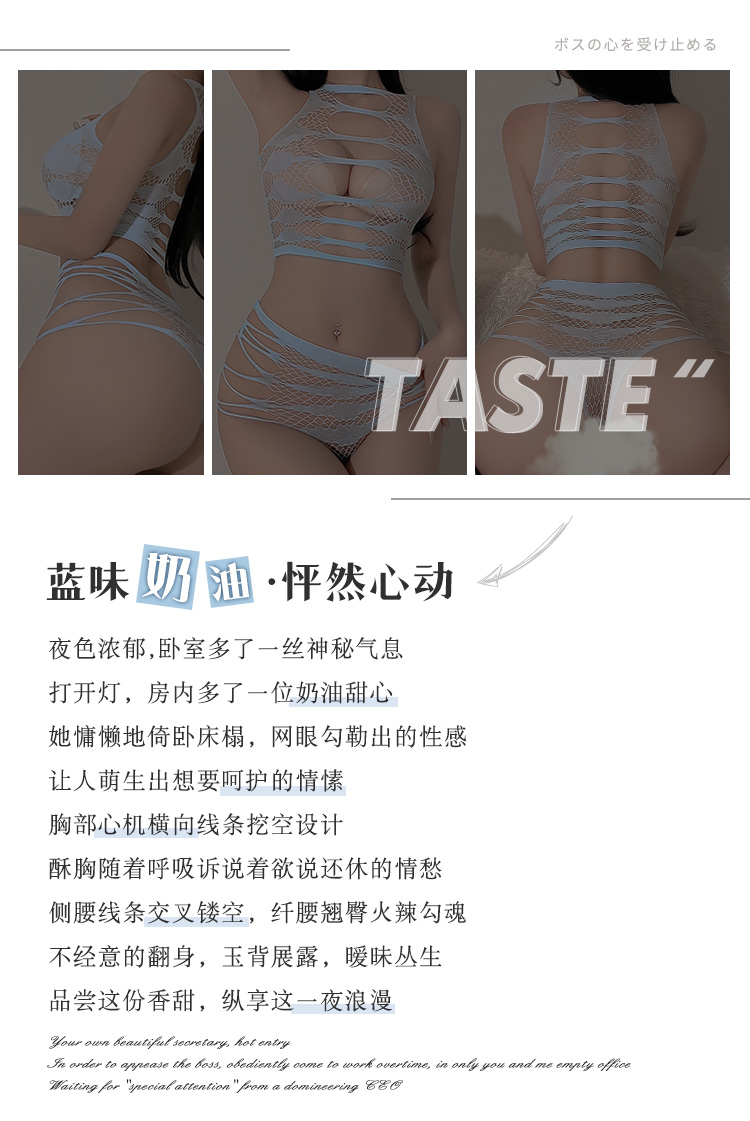 霏慕 – 可撕扯性感鏤空透視網眼分離套裝【藍】