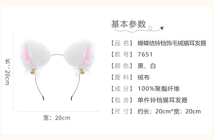 霏慕 ins風百搭鈴鐺貓耳髮箍 – 單件配飾款白