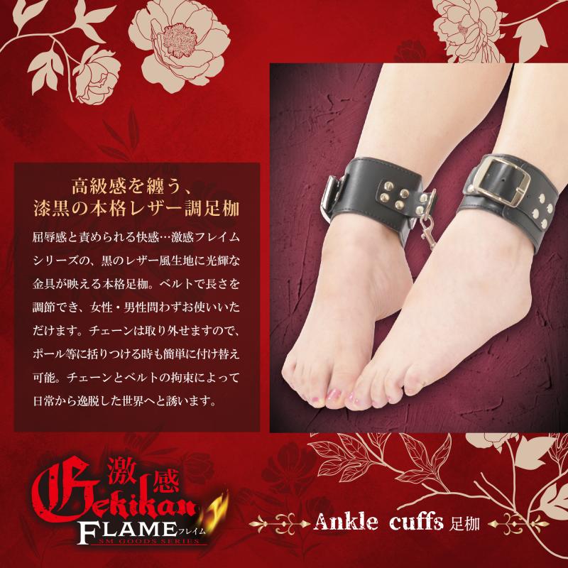 日本MERCI – 激感FLAME 高級漆黑皮革足枷 [附可拆鏈條]
