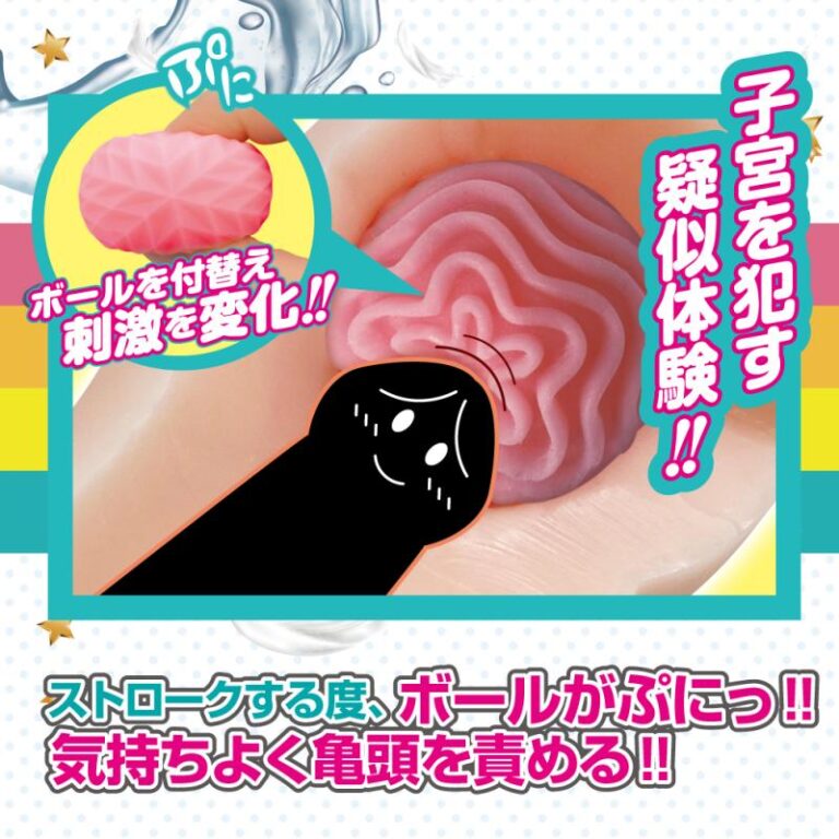 粘性的側褶皺和背部稍大的疣刺激您的陽具,一直深入到子宮後部並將龜頭包裹起來!通過更換 4 種球來改變刺激。豐滿的感覺很舒服,如果用龜頭捅一下,就可以享受強X子宮的感覺。