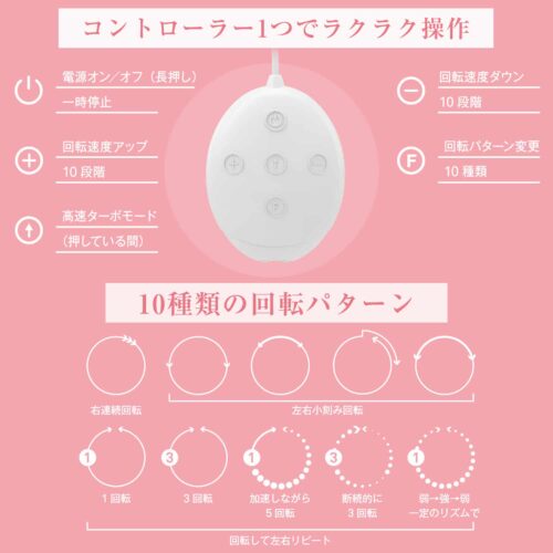 全部操作都是控制器上,10階段速度調節,於不同時段提供不同快感,還提供 Turbo Mode 使快感絕對提升!付屬品乳頭跟接觸頭可上下調節(2階段),任何胸型都可以照顧到~!產品都經過輕量化,搭載可回充的鋰電池,只需使用付帶的磁力USB線即可充電使用!胸杯的材料是使跟身體貼近的物料製造,不會構成過感或不適等問題。