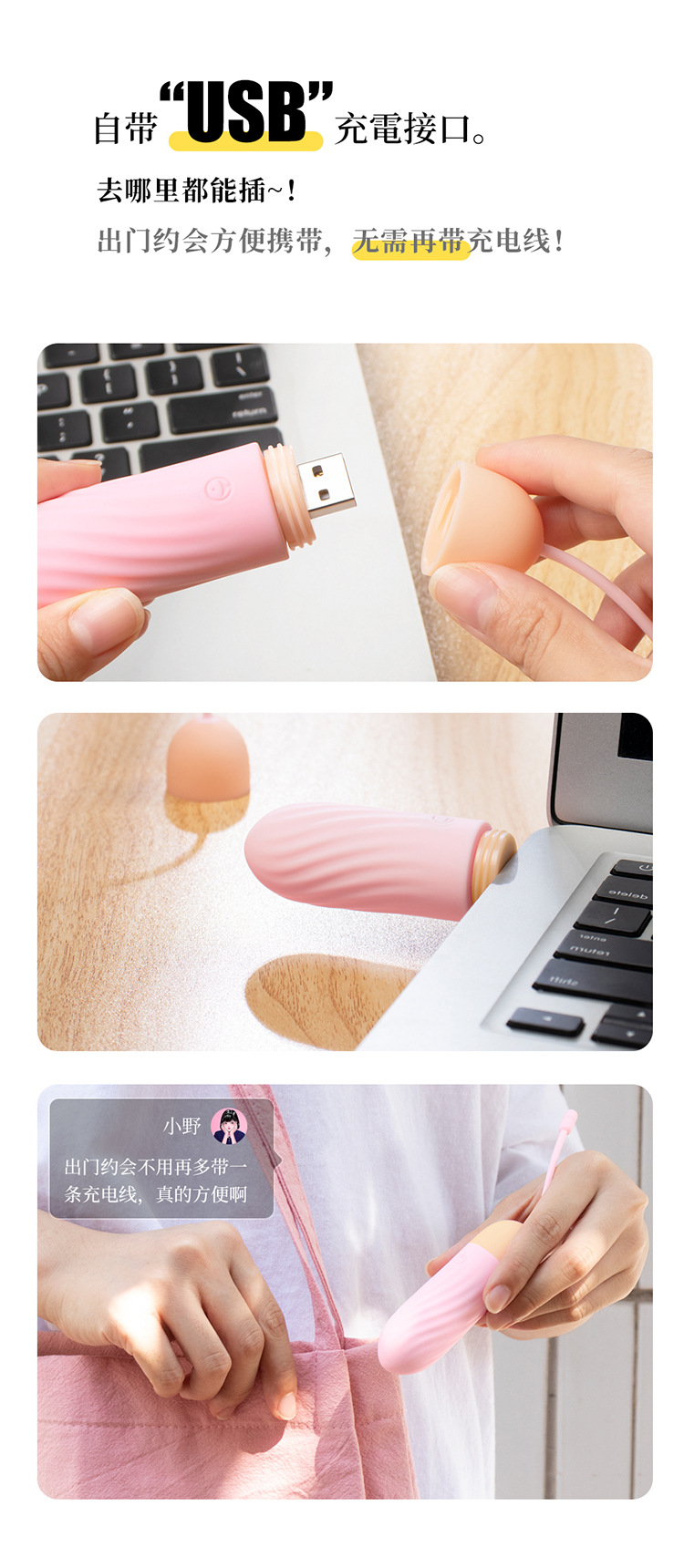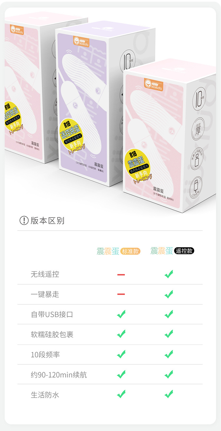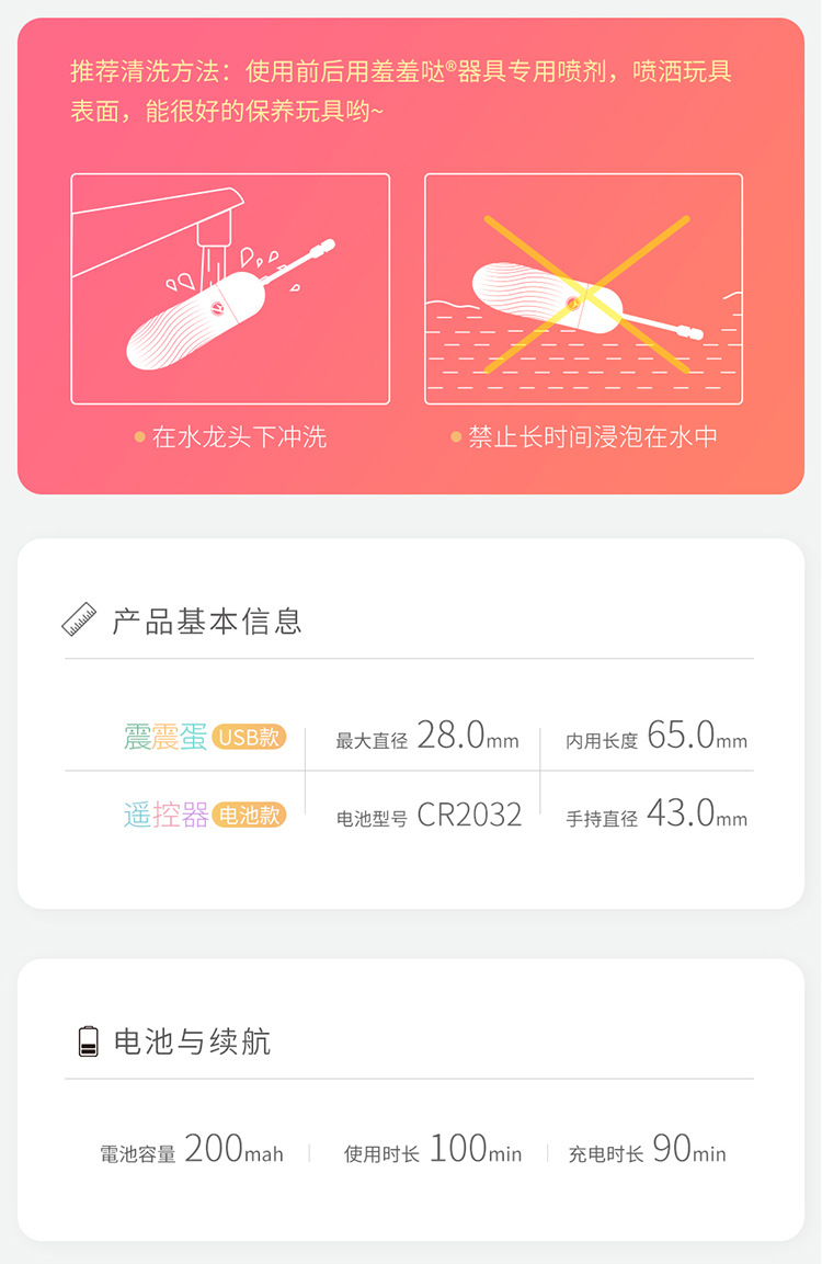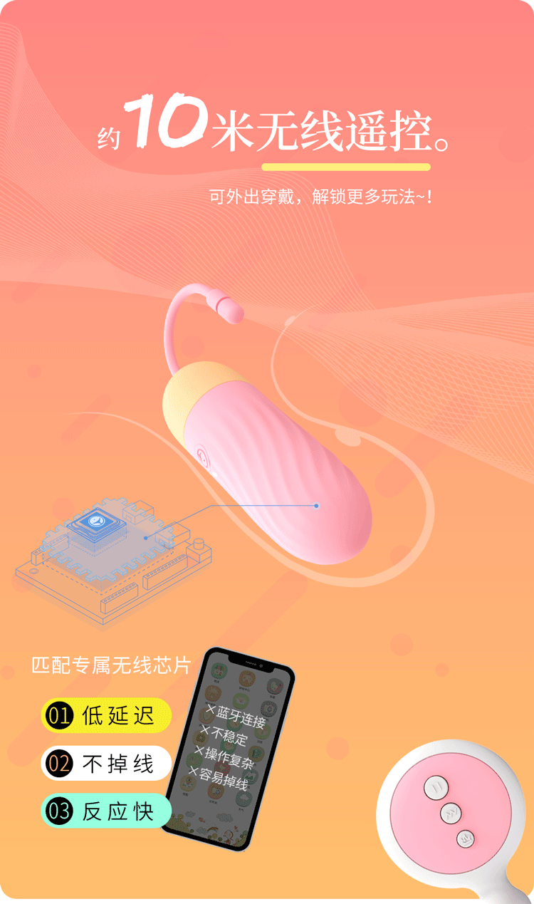 羞羞噠 – 震震蛋靜音變頻遙控跳蛋 蜜桃粉 [USB遥控款]