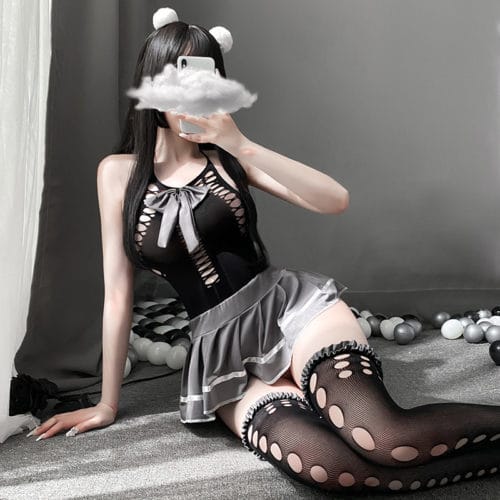 角色扮演 – 性感娇俏学院风网衣裙套装(含白髮箍)