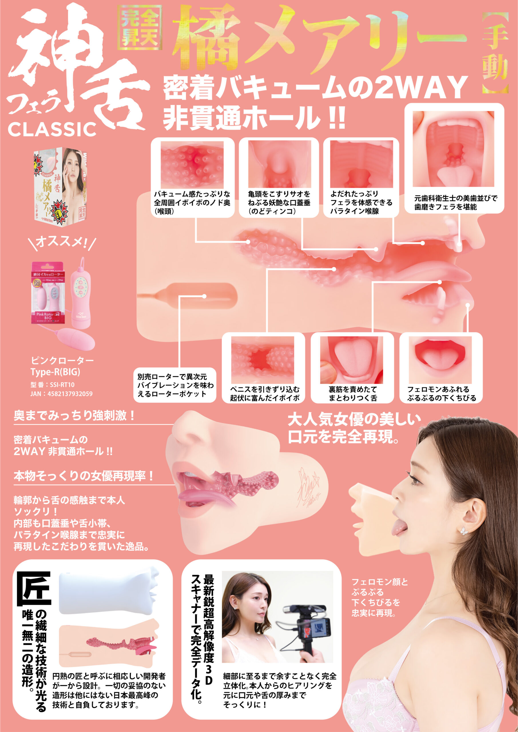性感混血女神【橘瑪麗】的溫柔舔舐與強烈吸吮完美復刻!3D精密掃描+肉厚密貼設計,讓她的小嘴緊緊包覆,體驗最極致的口交誘惑!